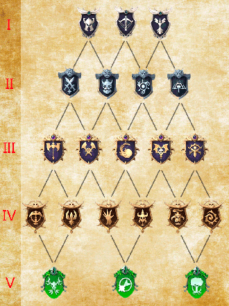 Обратите внимание! Прежде чем начать путь по дереву, стоит продумать соответствие выбранного пути магии, склонности и рыцарства. Эта комбинация определит доступные для Вас переходы. Если Вы решите сменить одну или несколько ступеней, то изучение другого пути (равного уже изученному ранее) будет стоить 25% от номинала.